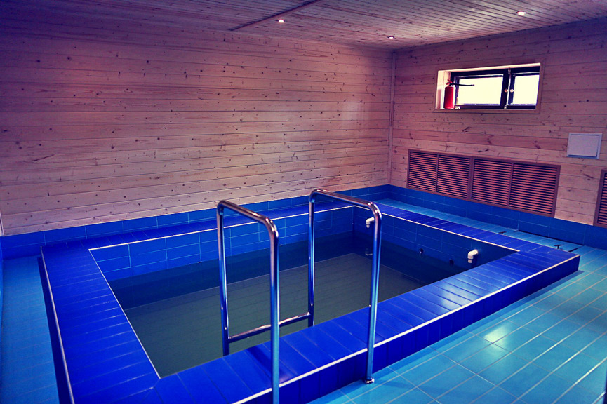 В распоряжении посетителей бассейн с 4 дорожками по 25 метров. Бассейн имеет красивую подсветку. Вода постоянно проходит через систему фильтрации.